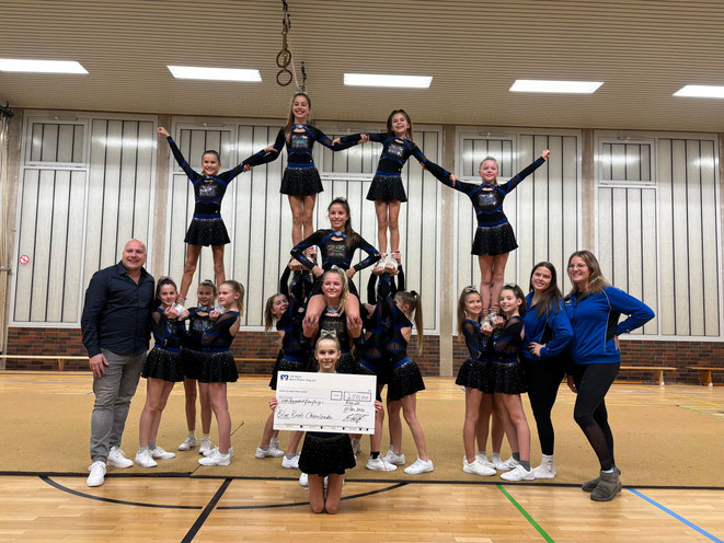 Kurz darauf folgten die Sparrows (11–13 Jahre). Auch dieses Team zeigte ein einwandfreies Programm. Die Zuschauertribüne bebte, und mit 91,02 Punkten belegten sie den 5. Platz in einem ebenfalls großen Starterfeld.